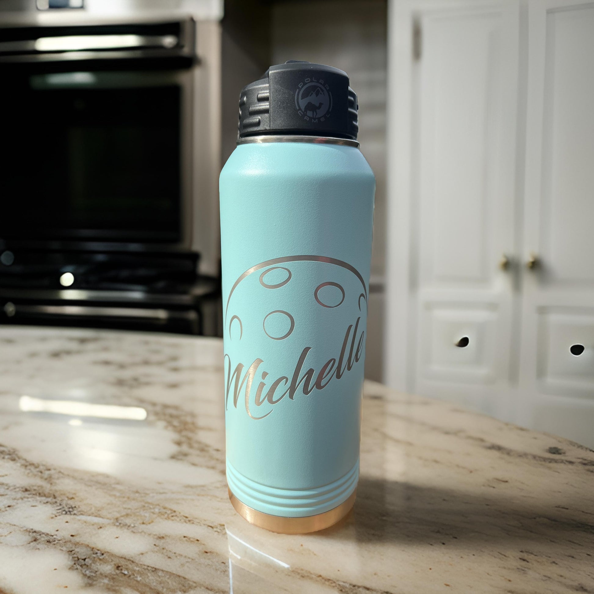 32oz Laser etched Polar Camel Water Bottle with custom name and Pickleball logo.